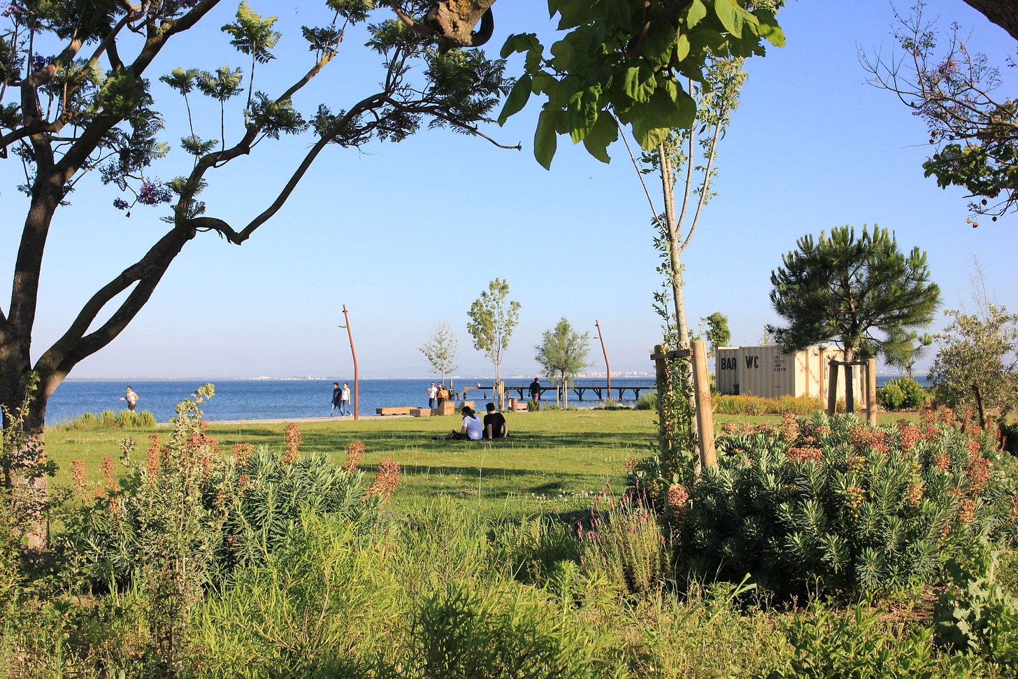 E poi c’è il Parco Fluviale di Oriente, che non è semplicemente un parco, ma un intero capitolo di Lisbona che sta ancora venendo scritto. “Una striscia lungo il Tago” mi dice, come se stesse parlando di una poesia, “dove il calore estivo della città diventa una brezza leggera”. Qui, le vele architettoniche progettate da Renzo Piano tagliano l’orizzonte come simboli di modernità in una città che non ha paura di reinventarsi. Adriana lo frequenta per lavoro, mostrando appartamenti che non solo offrono viste mozzafiato, ma raccontano, attraverso il design italiano, una storia di eleganza e precisione. Ma è anche un rifugio, un luogo dove le pressioni del lavoro si dissolvono come una leggera foschia sul fiume, e lei può perdersi in quella pace fluida che solo il Tago può offrire.