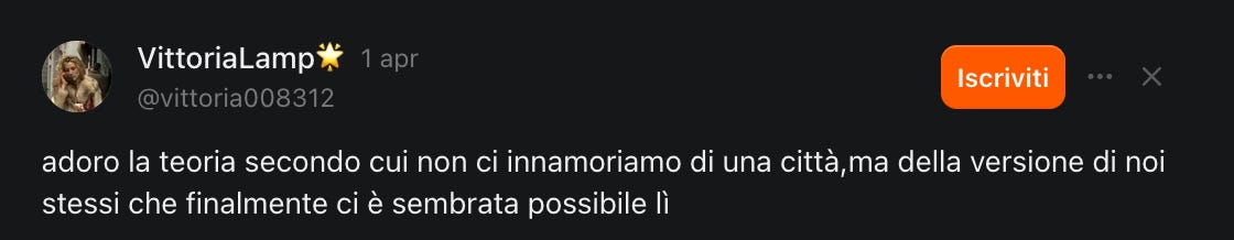 C’è una frase che ho letto nelle Notes di VittoriaLamp🌟 su Substack alcuni giorni fa e l’ho subito sentita risuonare: