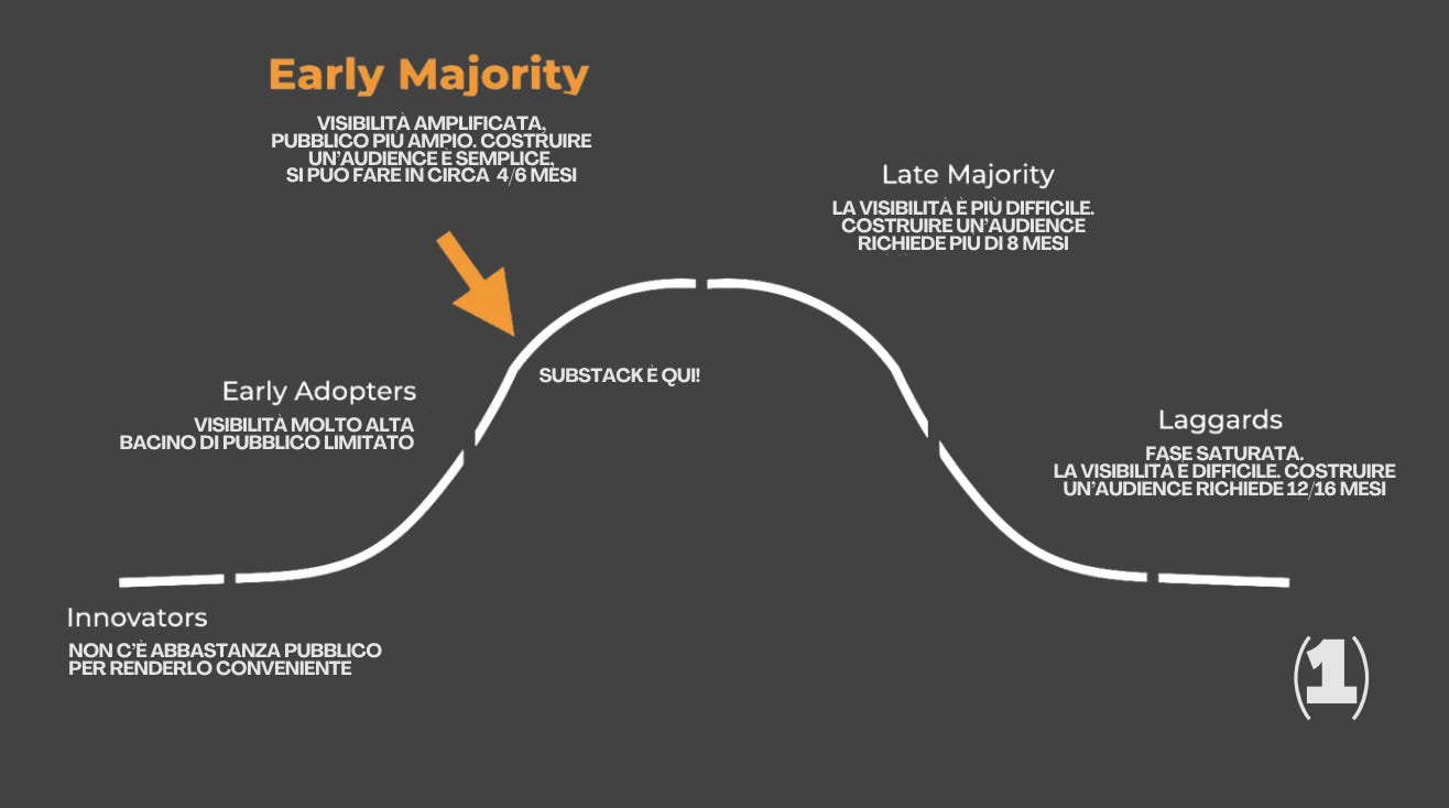 Substack è la piattaforma più semplice su cui crescere in questo momento, ma lo sarà solo per i prossimi 6/9 mesi.