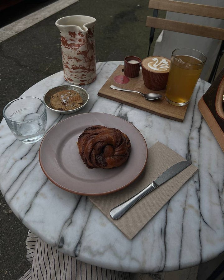 Con un tono più sognante, mi parla di Marigold, un caffè con un'atmosfera nordica “Se faccio colazione fuori casa, senza nemmeno un secondo di esitazione, vado da Marigold, posticino con un po' di vibe nordiche, parlano quasi tutti inglese, i clienti sembrano di un'altra nazione, sembra di entrare in un'altra dimensione. Menzione d’onore per il loro cinnamon bun tra i più buoni di Roma e il mio guilty pleasure il cookie con cioccolato e fiocchi di sale, quello però me lo porto a casa!”.